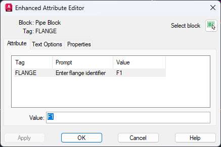 In the “Enhanced Attribute Editor” add the value that you want, I am adding F1 for the first flange and then click OK.