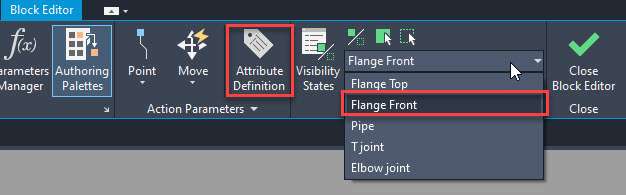 We now have an attribute associated with our Flange front view of the dynamic block.