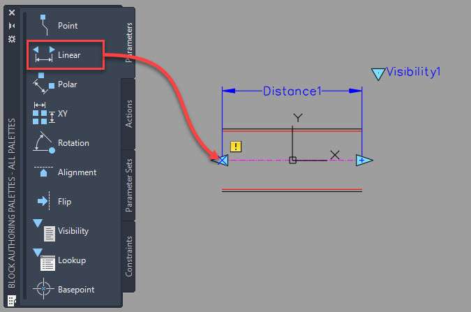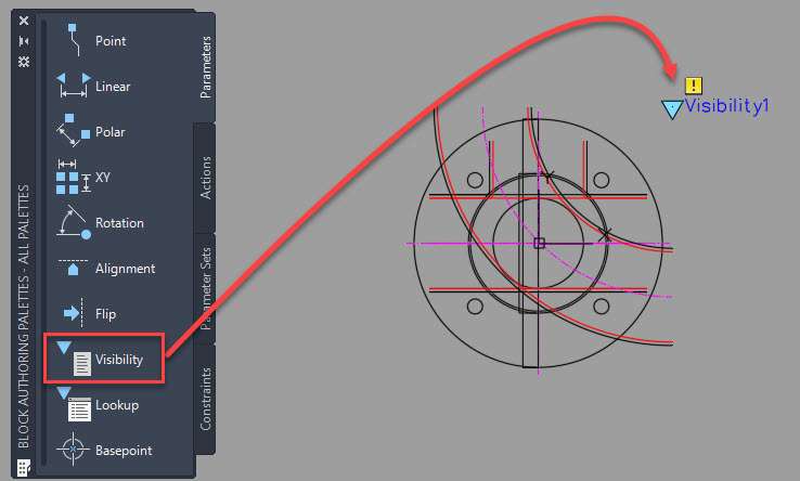 After the visibility parameter and action, we need to add the next property in the โ€œpipeโ€ drawing of the dynamic block.