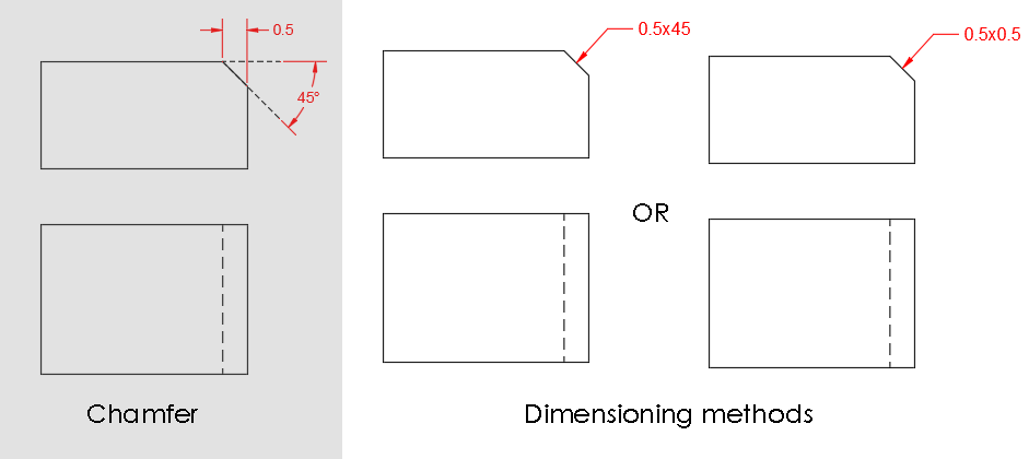 When your drawing contains several rough features like fillets or chamfers of the same size then instead of dimensioning all the features add dimension to one and specify the number of times it is repeated in the drawing using the X symbol. You can also specify these dimensions using a note in the drawing.