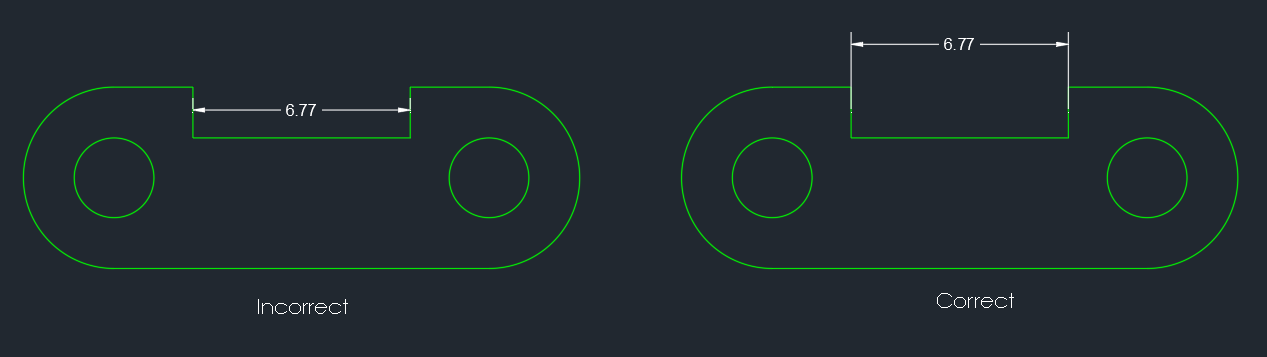 Don’t place dimensions directly on the object view unless it makes the drawing clearer.