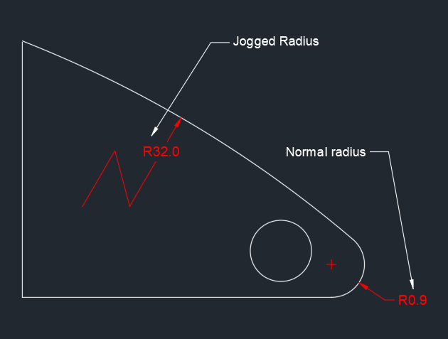 Use jogged extension lines for the radius dimension if the center of the arc falls outside the sheet or if it is in another view.