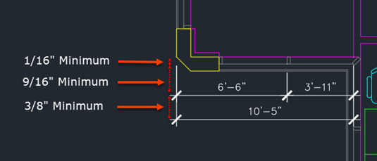 Donโt add very tight tolerances in architectural drawings where it has no practical use. Architectural drawings are usually not made with very tight tolerances so maximum precision floats around ยผโ and in some commercial buildings it can go up to 1/8โ. The dimension fractions should not be added in increments less than 1/16โ as per National Cad standards.