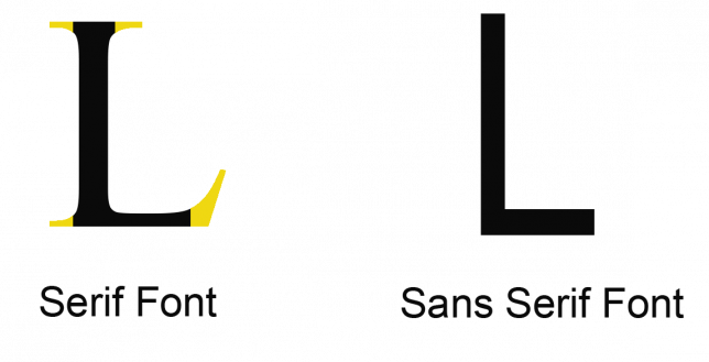 In drawings use sans serif fonts to improve clarity, this is as per the National Cad Standard recommendation. Serifs are fonts with overhangs that may not look clean on an architectural drawing and sans serif are fonts without serifs or overhangs. In the following image yellow highlights are the overhangs that make a font โserifโ.