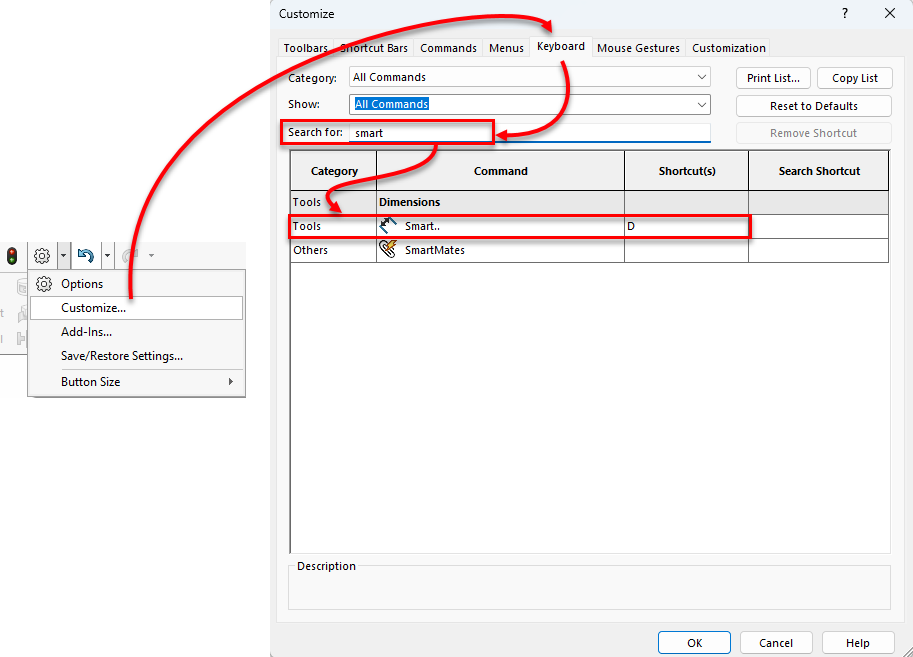 Type the shortcut key from your keyboard that you want to assign to that command and press OK.