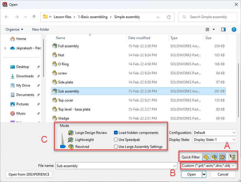 Additionally, you can only load the assemblies using the different modes like โlightweightโ, and โlarge design reviewโ and resolved as shown in option C of the image.